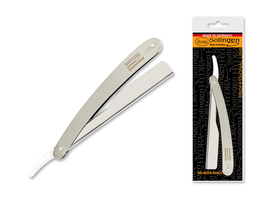 Hydra Solingen 5524 Ustura mekanizmasına tıraş bıçağı takmak için ortadaki sürgü dışarı doğru itilir, bıçak tabladaki çentiklere oturtulur, daha sonra sürgü eski pozisyonuna doğru geri itilerek sabitlenir. Paslanmaz çelik gövdesiyle ağır ve tok yapılı bir tıraş aletidir.