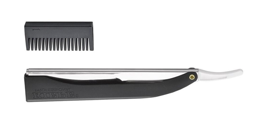 Kiepe 129 Ustura mekanizmasına tıraş bıçağı takmak için ortadaki sürgü dışarı doğru itilir, bıçak tabladaki çentiklere oturtulur, daha sonra sürgü eski pozisyonuna doğru geri itilerek sabitlenir. Yanında gelen tarağı sayesinde saç ve sakal kırık temizliği de yapılabilir.