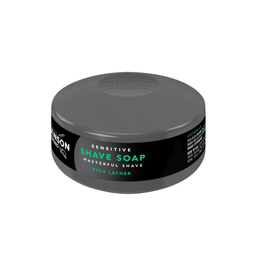 Experience a masterful shave with the Sensitive Shave Soap from Wilkinson Sword. The comfortable and creamy formula whips into a rich lather to leave skin feeling soft and smooth, for a truly classic shaving experience.
