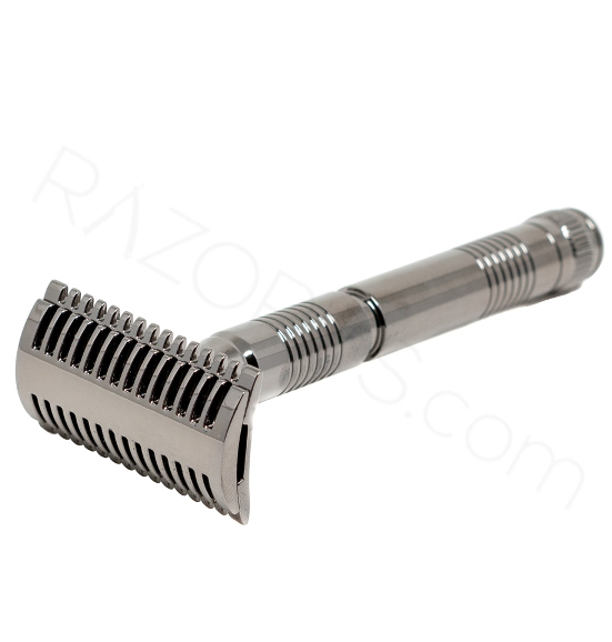 Tıraş bıçağına denge ve dayanıklılık katan özenle seçilmiş pirinç döküm tabakalardan, antrasit (gun metal) renkli olarak Çin'de üretilmiştir.